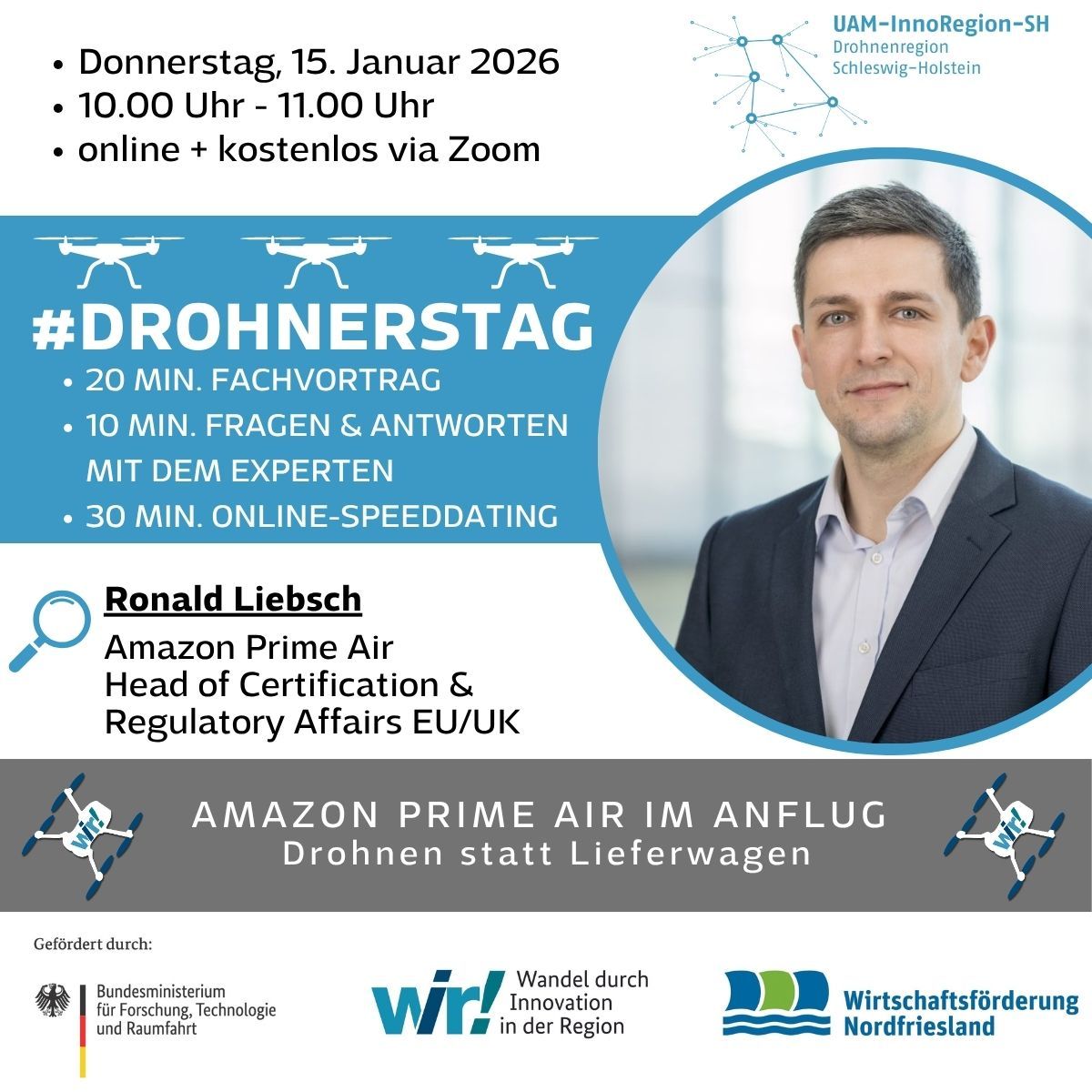 Das durch die Wirtschaftsförderung Nordfriesland koordinierte Projekt UAM-InnoRegion-SH lädt mit freundlicher Unterstützung der Nordzentren e.V. herzlich ein, am Online-Event „TakeOff-SH 2.0“ teilzunehmen, um diese und weitere spannende Fragen aus dem Bereich der neuen Drone Economy zu diskutieren!