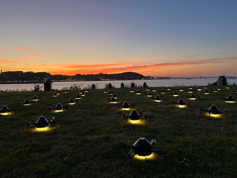 Im Verbundprojekt „Drohnenballett“ entwickeln die Kieler Drohnenfirma Zouber und die Technische Universität Hamburg (TUHH) eine neue Generation von Drohnenshows, die technisch deutlich flexibler, kreativer und effizienter planbar ist. Kern ist eine KI-basierte Flugpfadplanungs- und Steuerungstechnologie für Drohnenschwärme: Flugwege sollen automatisch berechnet werden, damit Shows schneller und kostengünstiger erstellt werden können. Gleichzeitig wird eine dynamische Steuerung entwickelt, mit der sich eine Show während der Aufführung anpassen lässt – zum Beispiel, um auf Zuschauerinteraktion zu reagieren. Ergänzend werden die neuen technischen Möglichkeiten gestalterisch erprobt, etwa durch fließende Übergänge zwischen Figuren („Morphing“) und interaktive Showelemente. Als zentraler Erprobungs- und Demonstrationsort dient der Flughafen Leck, der mit Gelände und Hangars gute Bedingungen für Tests, Proben und öffentliche Vorführungen bietet.