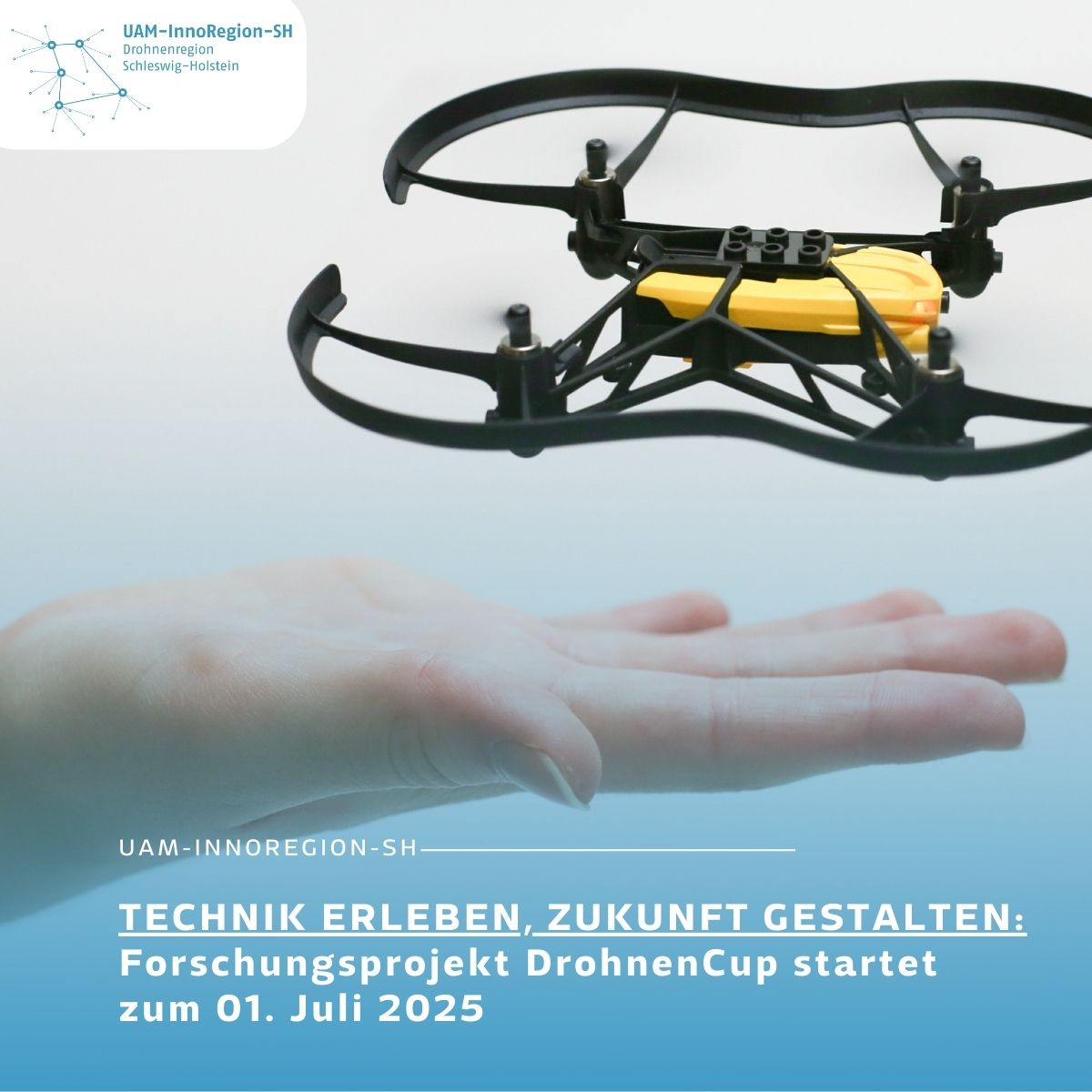 Zum 01.07.2025 startet unser neues Bildungs- und Forschungsprojekt „DrohnenCup“ in der UAM-InnoRegion-SH! Ziel ist es, junge Menschen für Drohnentechnologie zu begeistern und zugleich neue Forschung zur Mensch-Drohne-Interaktion voranzubringen.