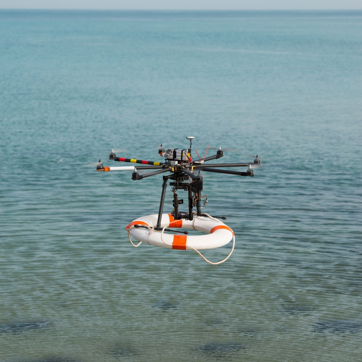 Erste Pilotprojekte befassten sich auch mit dem Abwurf von leichten aufblasbaren Rettungsmitteln über dem Wasser. In den meisten Projekten sind handelsübliche Endkonsumentenprodukte in Verwendung, die manuell geflogen werden und dem Piloten keine ergänzenden Hilfsmittel bei der Suche und Personenrettung zur Verfügung stellen.