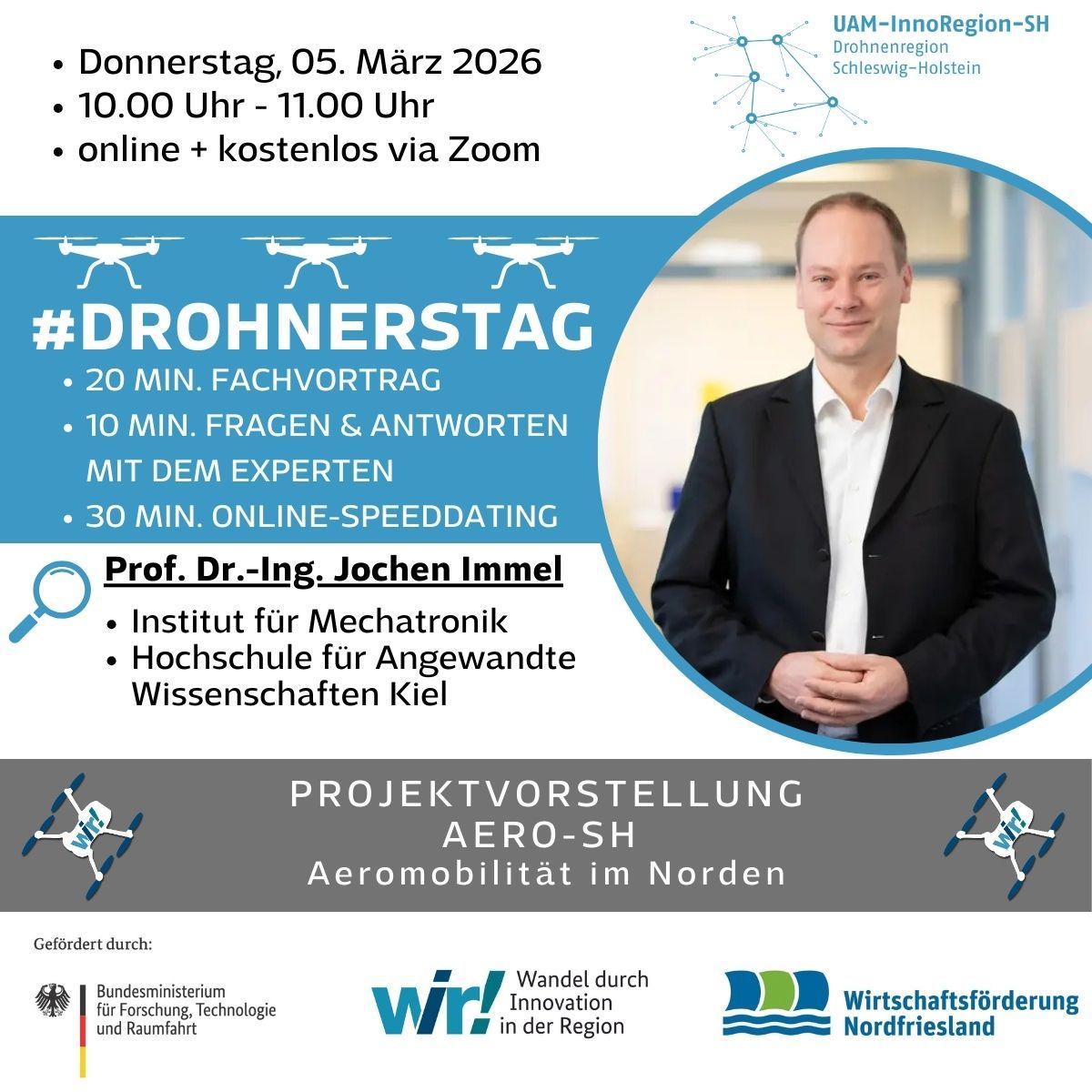 Am 15. Januar 2026 von 10:00 bis 11:00 Uhr ist es wieder so weit: Der nächste #Drohnerstag der UAM-InnoRegion-SH steht an – und diesmal mit einem besonderen Gast aus der internationalen Tech-Szene! 💡